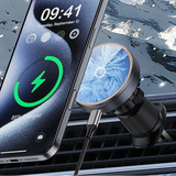The built-in RGB LED lights glow when charging begins, confirming a secure magnetic connection while adding a colorful, futuristic vibe to night driving. Designed for iPhone 12–15 MagSafe series, it delivers 30W high-speed charging when used with a QC 3.0 car charger adapter.